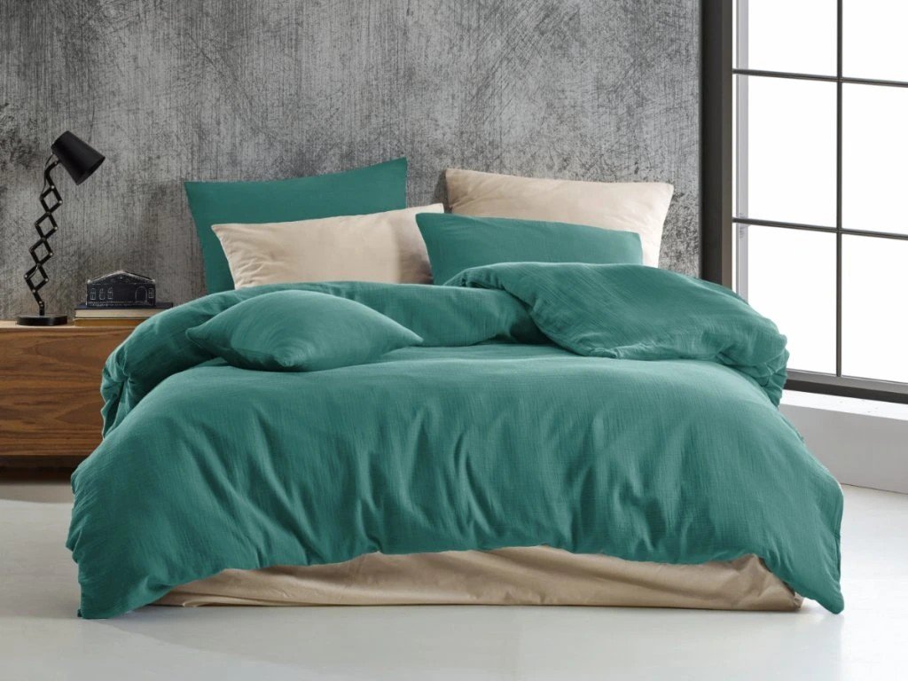 Mušelínové povlečení 140x200, 70x90 cm petrolové